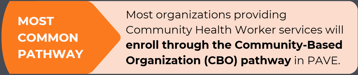 Note: Individual CHWs do not/cannot enroll in PAVE.