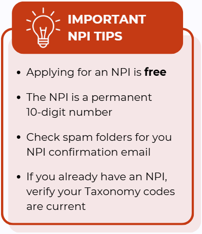| Type 1 NPI | Individuals | For individual practitioners, sole proprietors, and licensed clinicians.This is what CHWs, Doulas, LCWSs, LPCCs, and LMFTs need. |